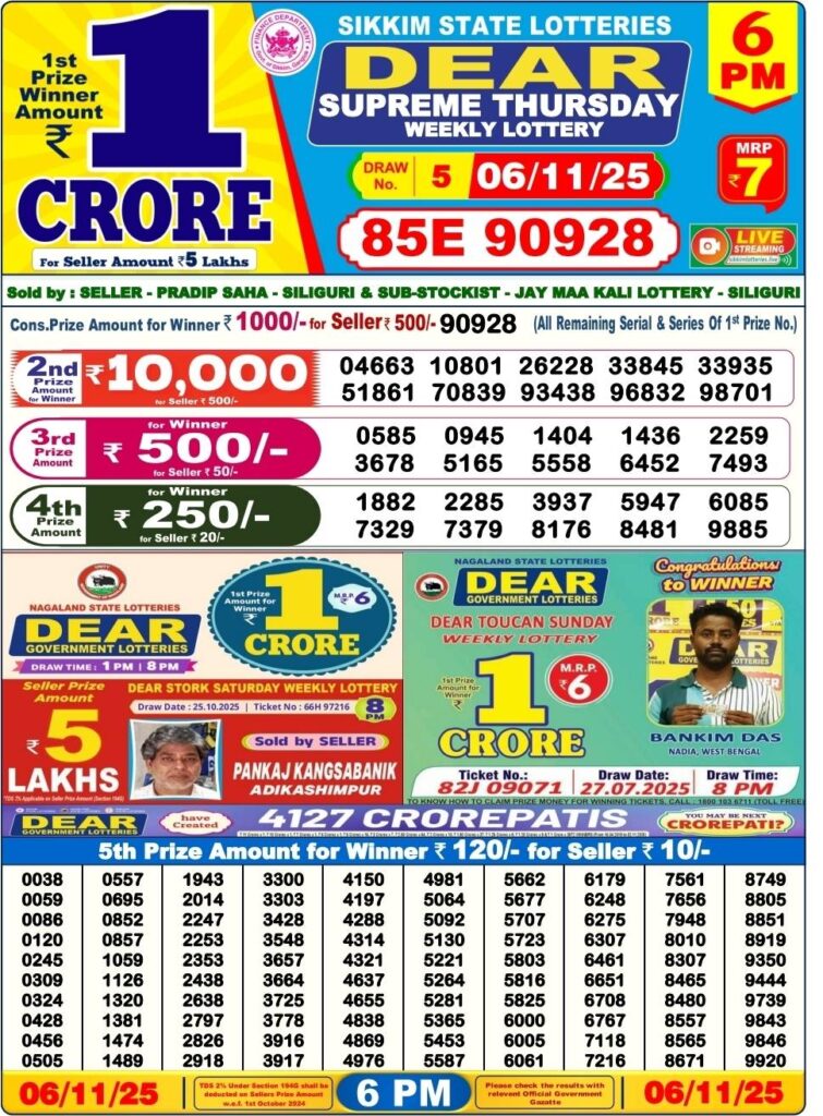 Lottery sambad Dhankesari Nagaland state lottery Sikkim state lottery West bengal state lottery Bodoland lottery result Khanpara lottery result Shillong Teer result Juwai Teer Assam Teer Result
